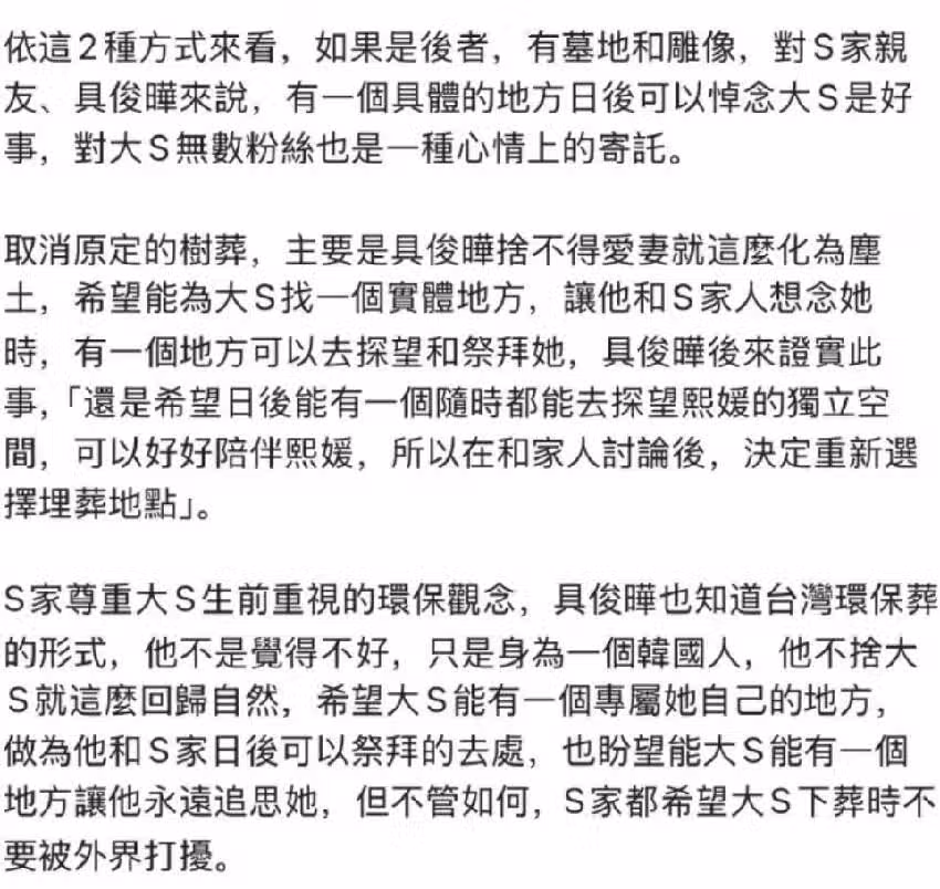 台媒報道,這些天具俊曄一直都在跑墓園,在實地考察最合適的下葬位置。