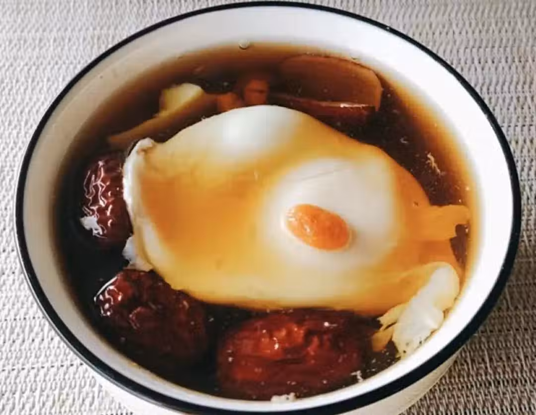 雞蛋1個,紅棗10顆,桂圓肉8顆,枸杞少許,生薑幾片,紅糖適量。