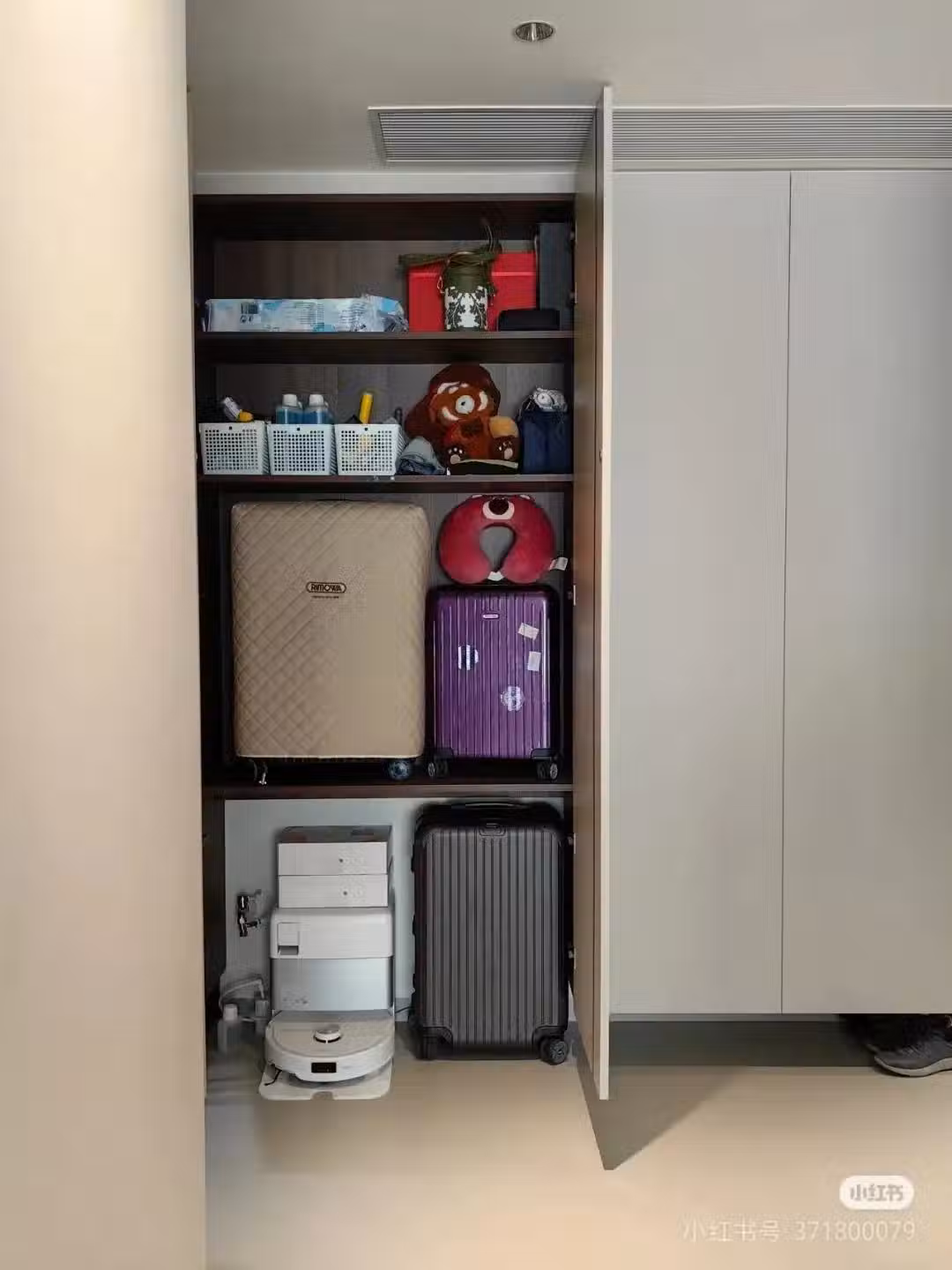 或者參考《小家越住越大》,在柜子下方空間做一個高抽屜,把行李箱放進去。