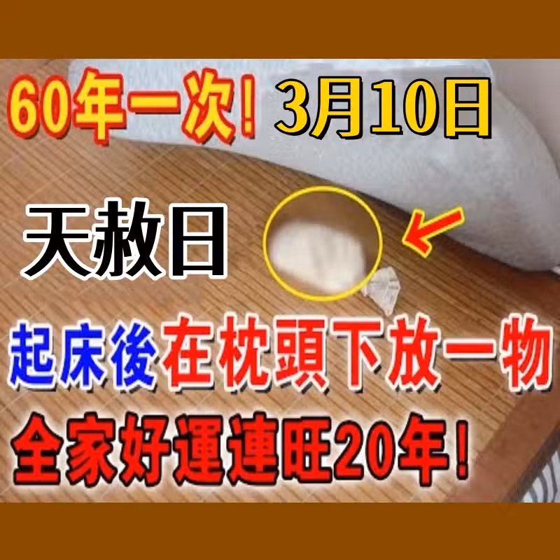 ⚠️ 不是迷信!就在 3 月 10 日「天赦日」,起床牢記在枕頭下放一物,隔天就有橫財降臨!全家好運連旺 20 年!💰🔥