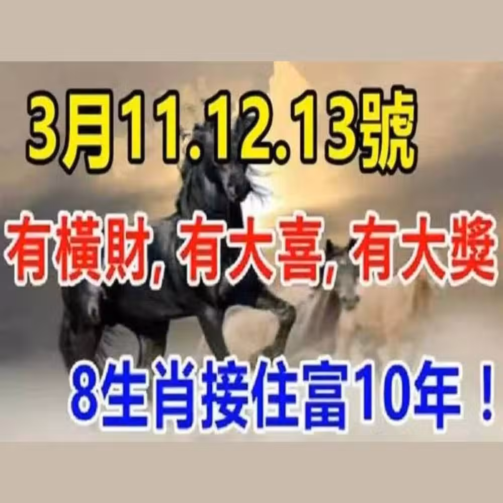 3月11.12.13日:八生肖接住富十年!有橫財,有大喜,有大獎!