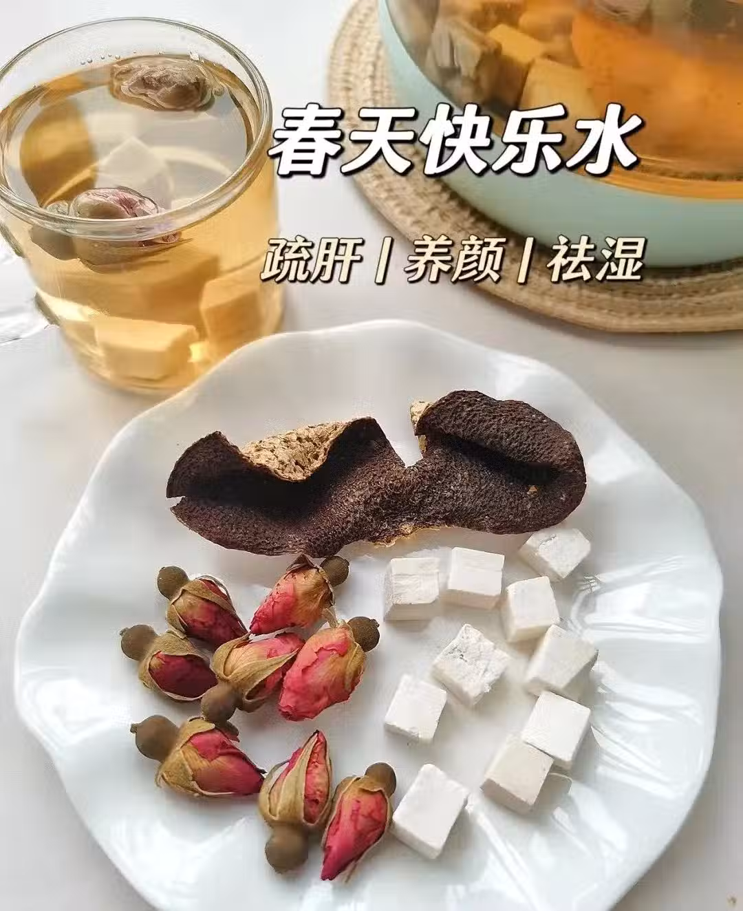 給大家推薦一個玫瑰花茯苓陳皮水,多喝玫瑰花茯苓陳皮水喝出健康美,你還在為暗沉膚色、疲憊狀態煩惱嗎?試試這杯養生花茶:這玫瑰花陳皮茯苓水,讓你由內而外煥發光彩!玫瑰花~是美容養顏的「天然護膚品」,可以疏肝解郁,改善氣色,讓你告別「黃臉婆」,陳皮:可以健脾祛濕,燥濕化痰,能幫你趕走油膩輕鬆擁有好的胃口,茯苓:利水滲濕,能寧心安神,可以助你擺脫水腫,睡出好氣色。三者搭配:口感清香甘甜,活血調經養生功效果!每天堅持喝出健康好氣色,讓你由內而外散發自信魅力!春天養肝正當時,少內耗,少生氣,多喝花茶,心情會變好。適量飲用有助於改善脾胃虛弱、食欲不振、腹脹便溏等症狀,並能緩解由情志不暢引起的心悸、失眠等問題。