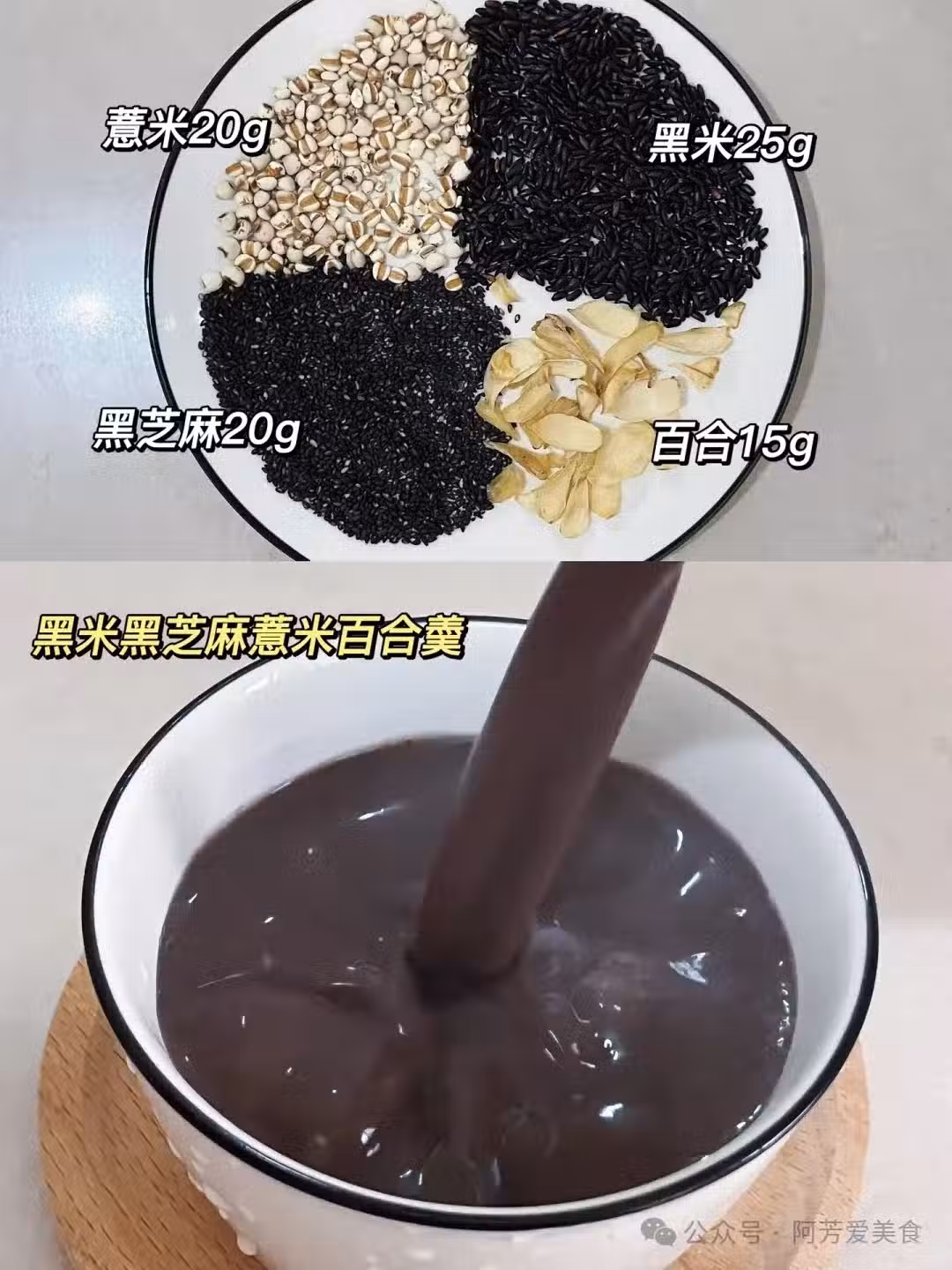 黑米黑芝麻薏米漿:除了薏米外的三種食材,油脂都很豐富,薏米又剛好可以中和一下它們的油膩感,意外的很清爽。
