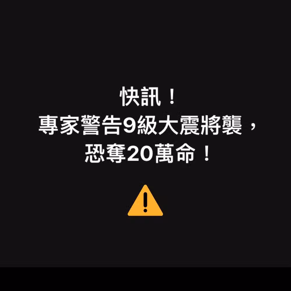 快訊!專家警告9級大震將襲,恐奪20萬命!