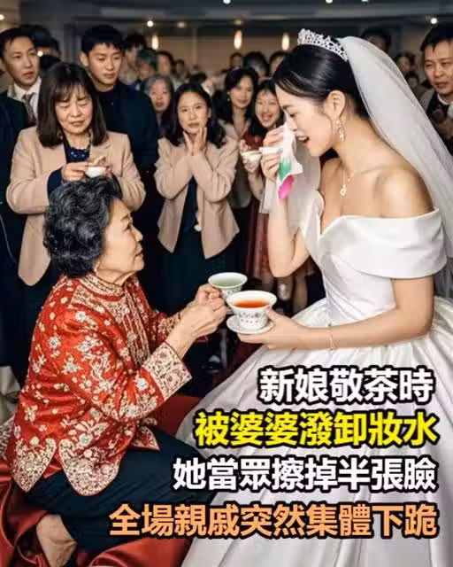 新娘敬茶時被婆婆潑卸妝水,她當眾擦掉半張臉,全場親戚突然集體下跪