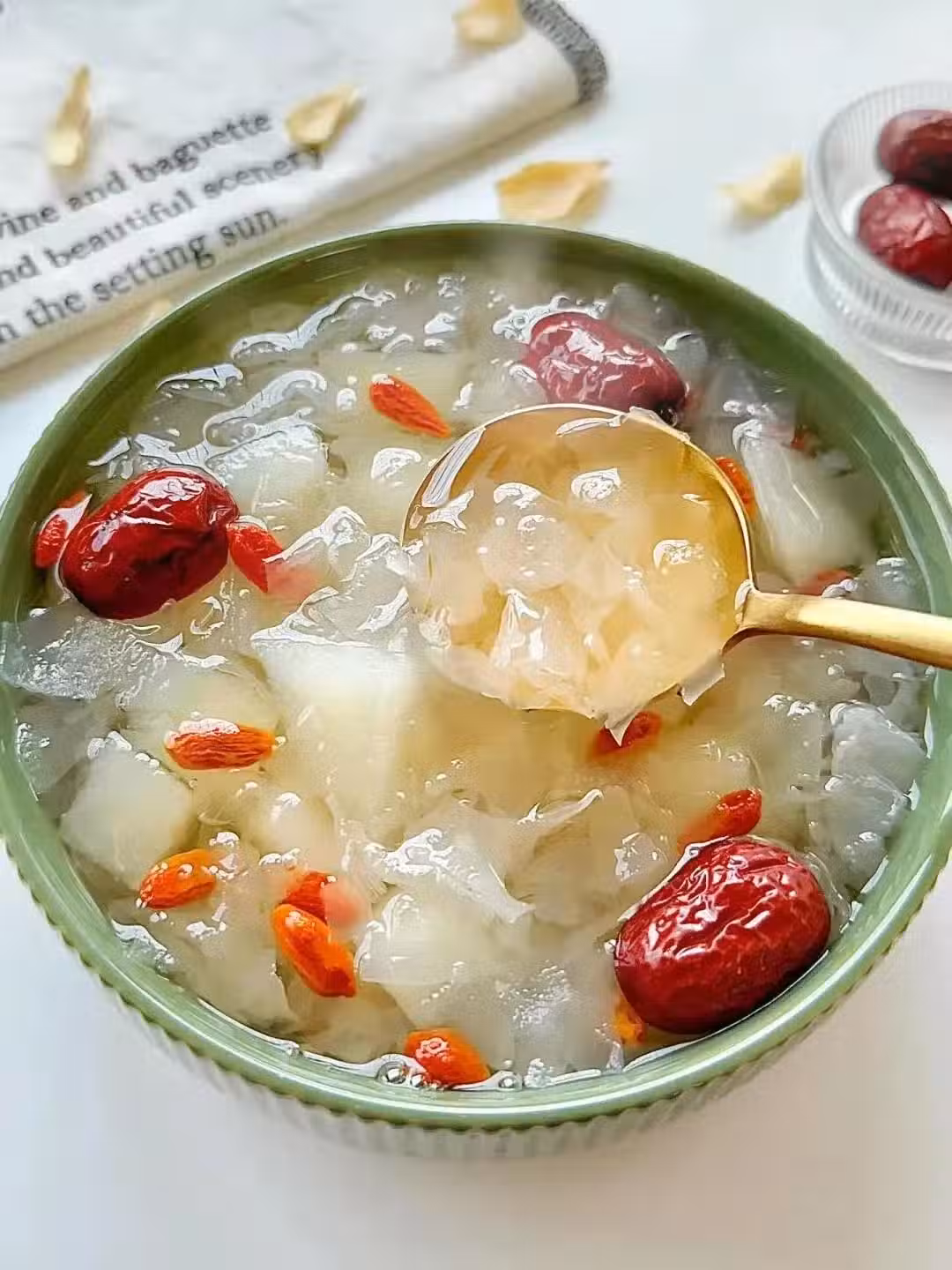 不僅治喉嚨干癢,皮膚干癢一樣有效果!前陣子冷,外出沒做好防護,吹風多了臉有些過敏發紅,也是給自己煮這個吃,再敷幾片面膜就好了!