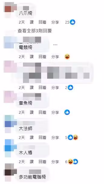 網友們的反應五花八門,有人感到驚訝,甚至有些人笑稱:「我還以為是某種外星生物的產物。」但也有網友表示,雖然這把椅子看起來有些怪異,但它的設計確實能滿足一些特殊的需求。