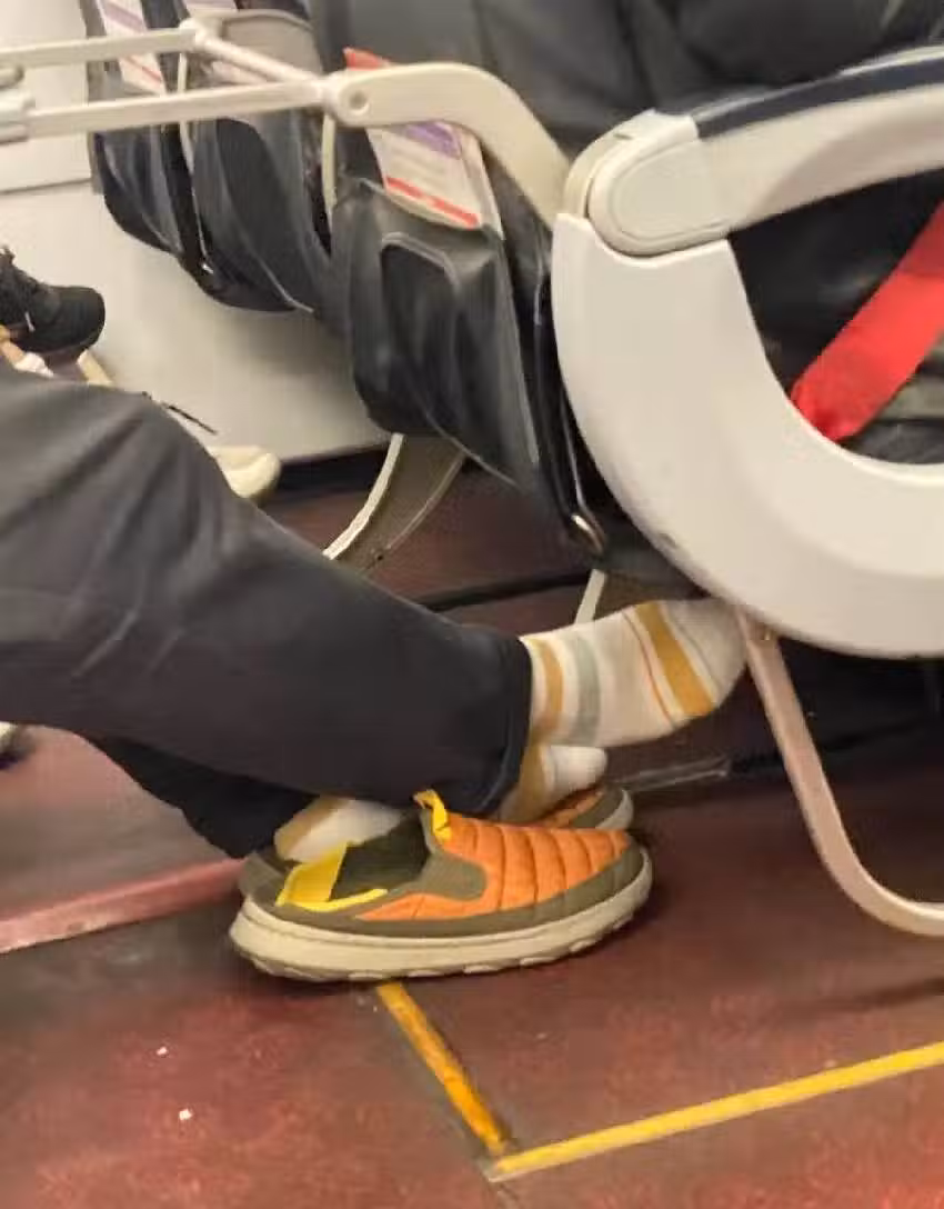 其他乘客看到後,紛紛露出了理解的神情,而奧客則開始緊張地重新穿上了鞋子。