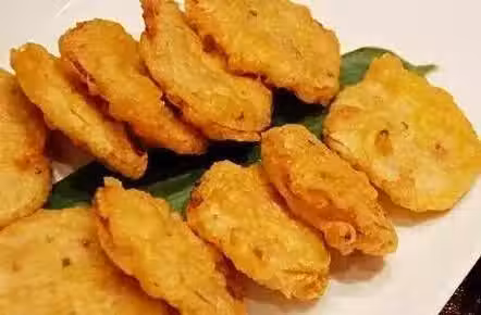 蓮藕的做法也非常多,做成這樣的藕餅也是非常的好吃的,在藕孔裡面塞上肉餡,外面裹一層澱粉,炸來吃,非常好吃。