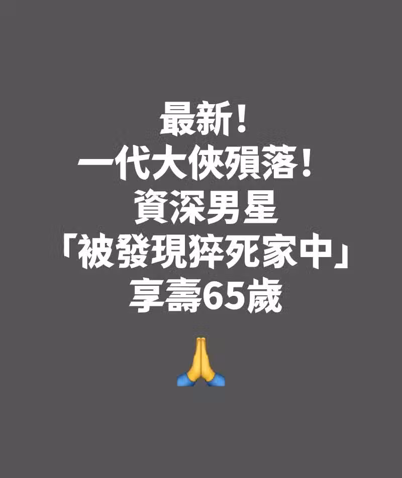 怎料,昨日(14號)卻傳出他猝死家中消息,享壽65歲,令外界一片震驚...