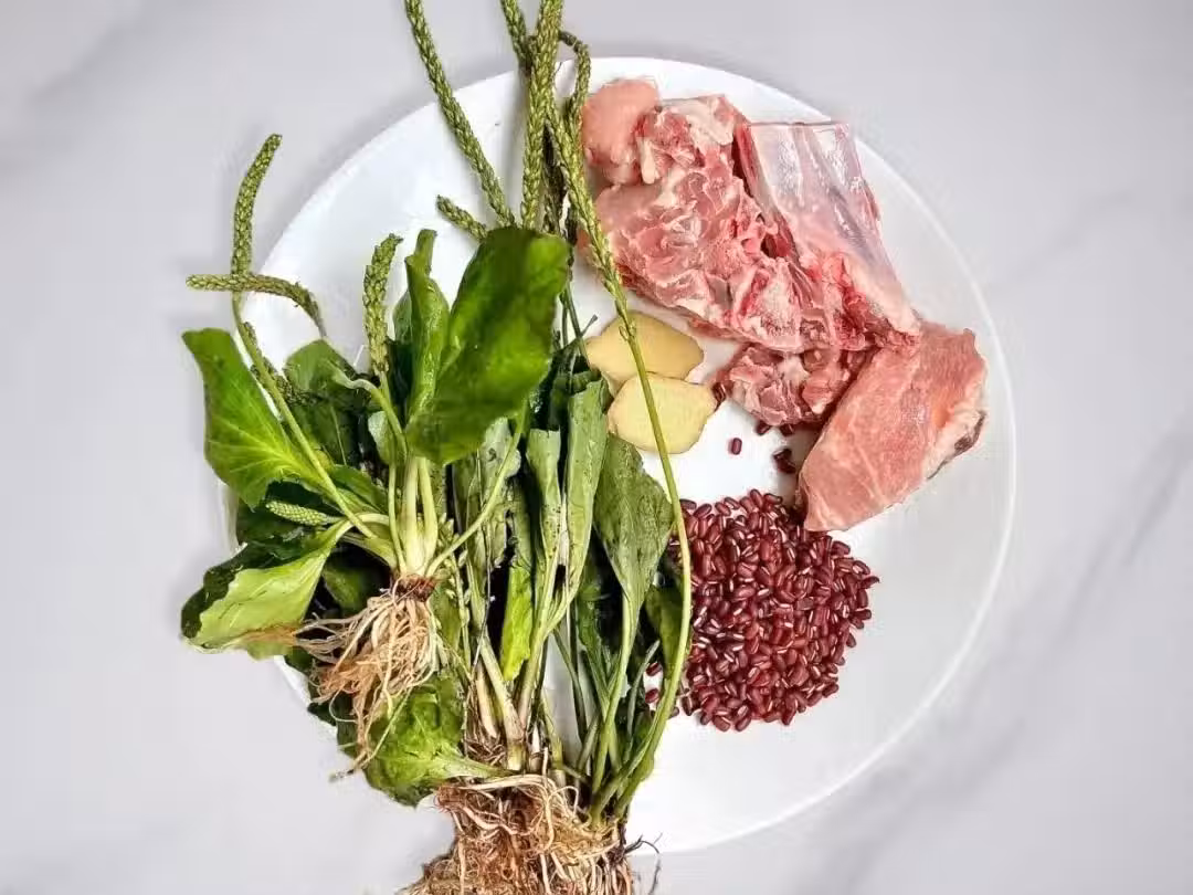 選葉脈清晰的鮮車前草,搭配當季赤小豆,前者利水不寒涼,後者祛濕兼健脾胃。排骨選肉多油少的肋排段,焯水後與赤小豆同煲更易出沙。特別注意:赤小豆要選細長腰身款,與圓潤紅豆功效迥異。