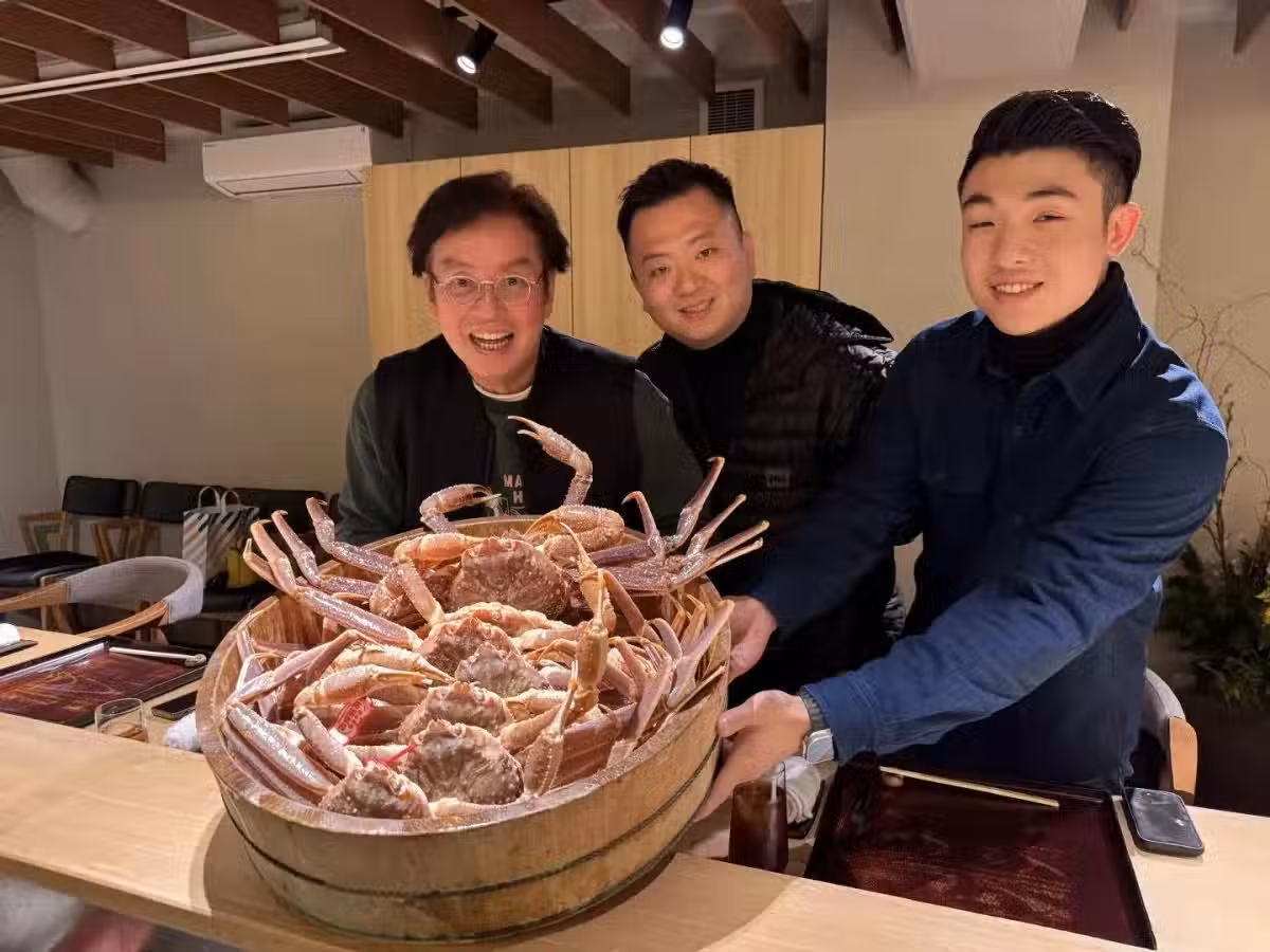 74歲譚詠麟去日本,在雨中散步,吃豪華蟹宴,對當地建築讚不絕口
