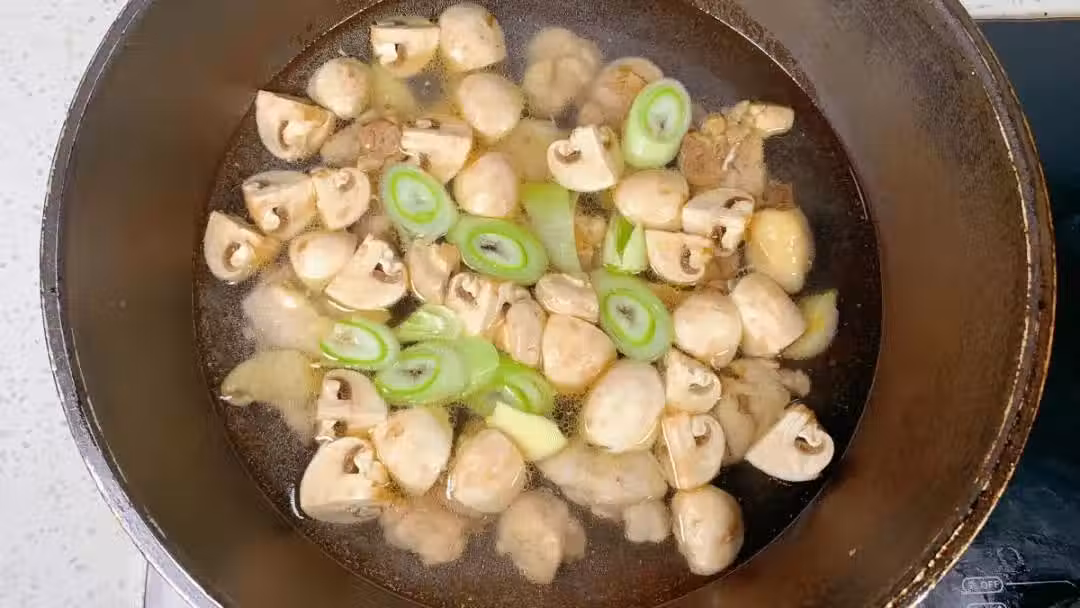 4、最後加入枸杞,再煮5分鐘。根據個人口味加入適量鹽調味,攪拌均勻後即可關火。將湯盛入碗中,香氣撲鼻的大蒜口蘑雞湯就完成了,香而不膩,太好喝了。