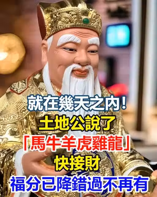 就在幾天之內!土地公說了「生肖馬牛羊虎雞龍」快接財,福分已經降下來!