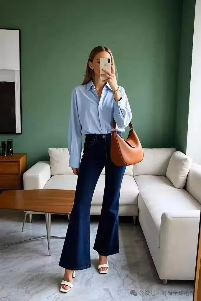 牛仔喇叭褲尤其 能修飾小腿線條, 哪怕腿型欠佳, 也能輕鬆營造出 大長腿既視感。