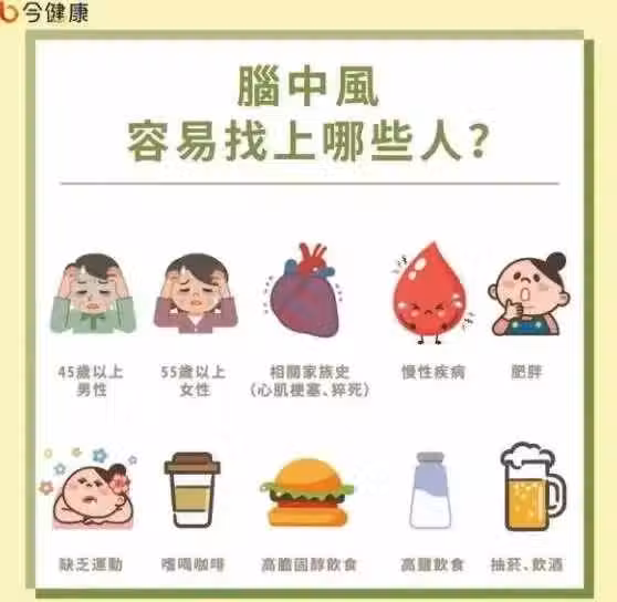 還有一種「小中風」,症狀會持續幾分鐘或幾十分鐘,最多不超過 24小時,不會留下任何後遺症,多數患者患病的時候意識清楚。