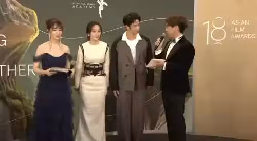 柯佳嬿(左2)與劉以豪(右2)一同現身亞洲電影大獎擔任頒獎人。(圖/Asian Film Awards Academy YouTube)