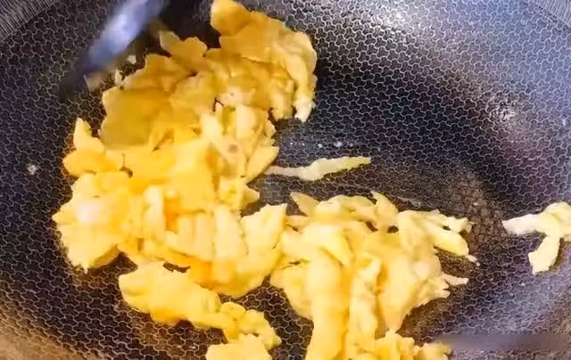 4.鍋中再加少許食用油和豬油,油熱加入蔥、姜、蒜、干辣椒、花椒爆香,然後加入胡蘿蔔絲、包菜翻炒至斷生。調味加入鹽、雞精、蚝油、白糖和生抽,繼續翻炒均勻,倒入雞蛋,炒至入味後加入韭菜翻炒出香味即可出鍋。