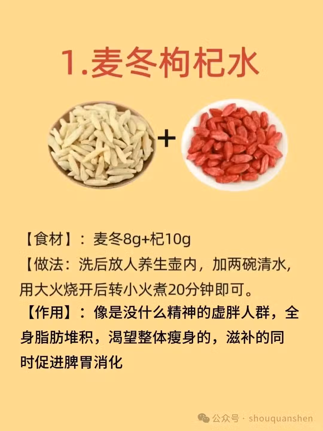 適合整個人沒精神、虛胖明顯、脂肪囤積較多的人群。枸杞富含抗氧化物質,搭配麥冬能夠滋補的同時,促進脾胃運化,加快代謝,讓身體輕盈起來。