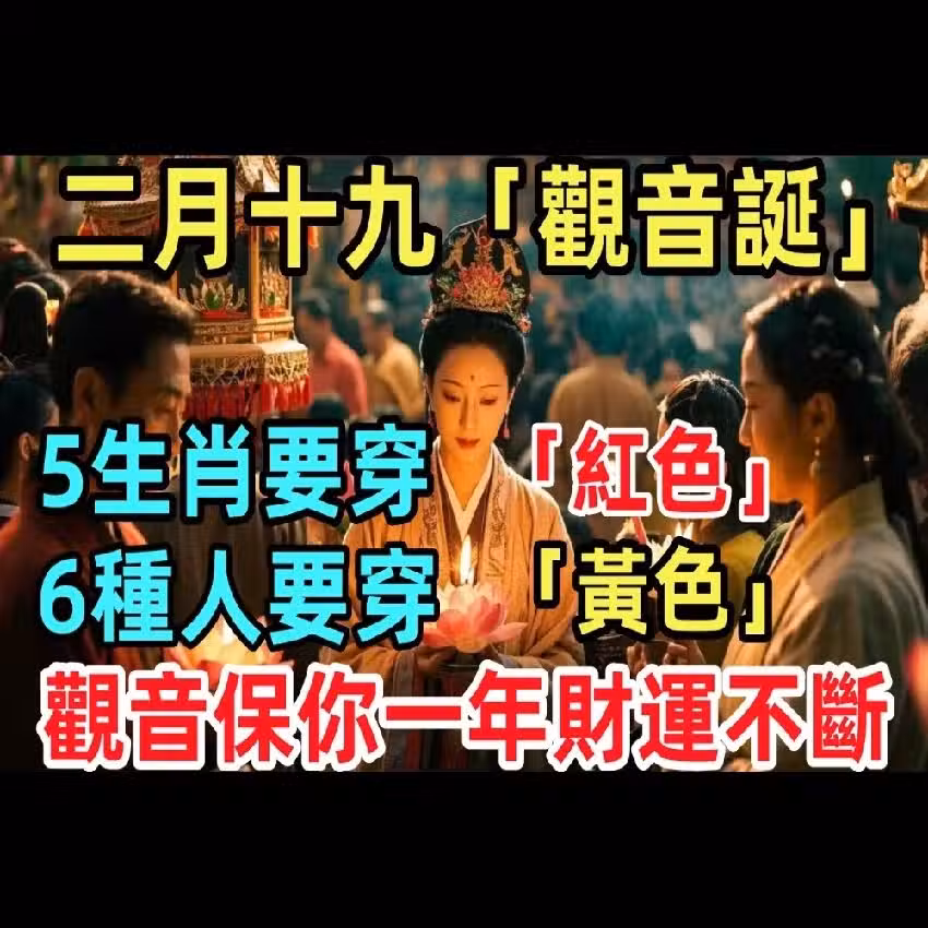 🔥 2025 年 3 月 18 日(農曆二月十九)「觀音誕」,5 生肖要穿「紅色」,6 種人要穿「黃色」,觀音庇佑你一年財運不斷!💰