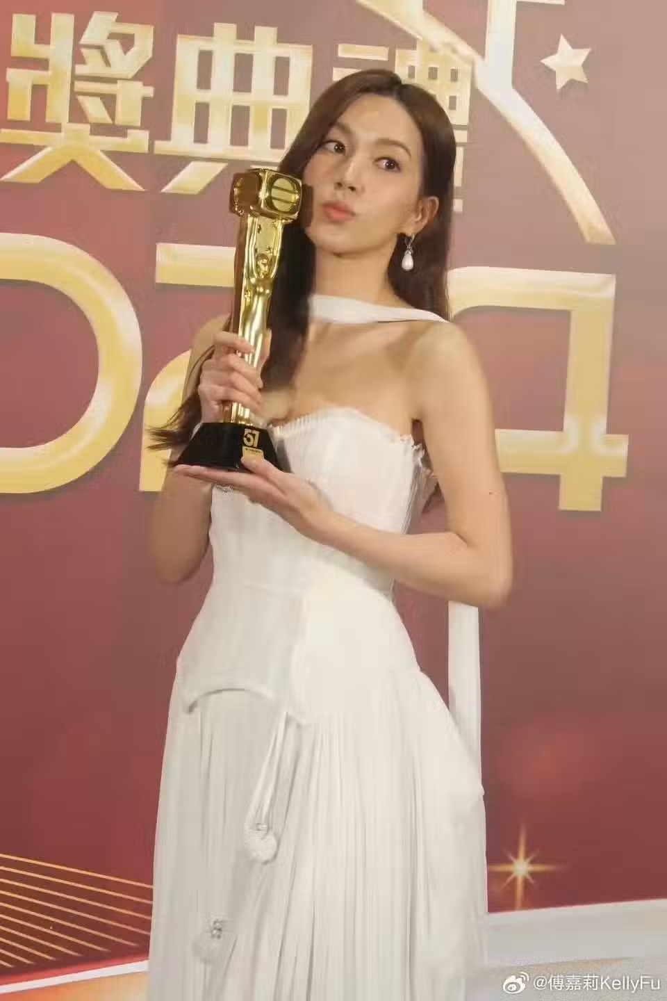 接過手中沉甸甸的獎座後,傅嘉莉似乎十分感慨,畢竟入行這麼多年,總算得到了公司以及觀眾的認可,她本人也是很開心。