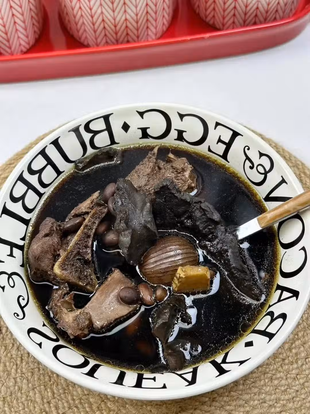 生地20g、熟地30g、黑豆80g、豬骨、蜜棗2個