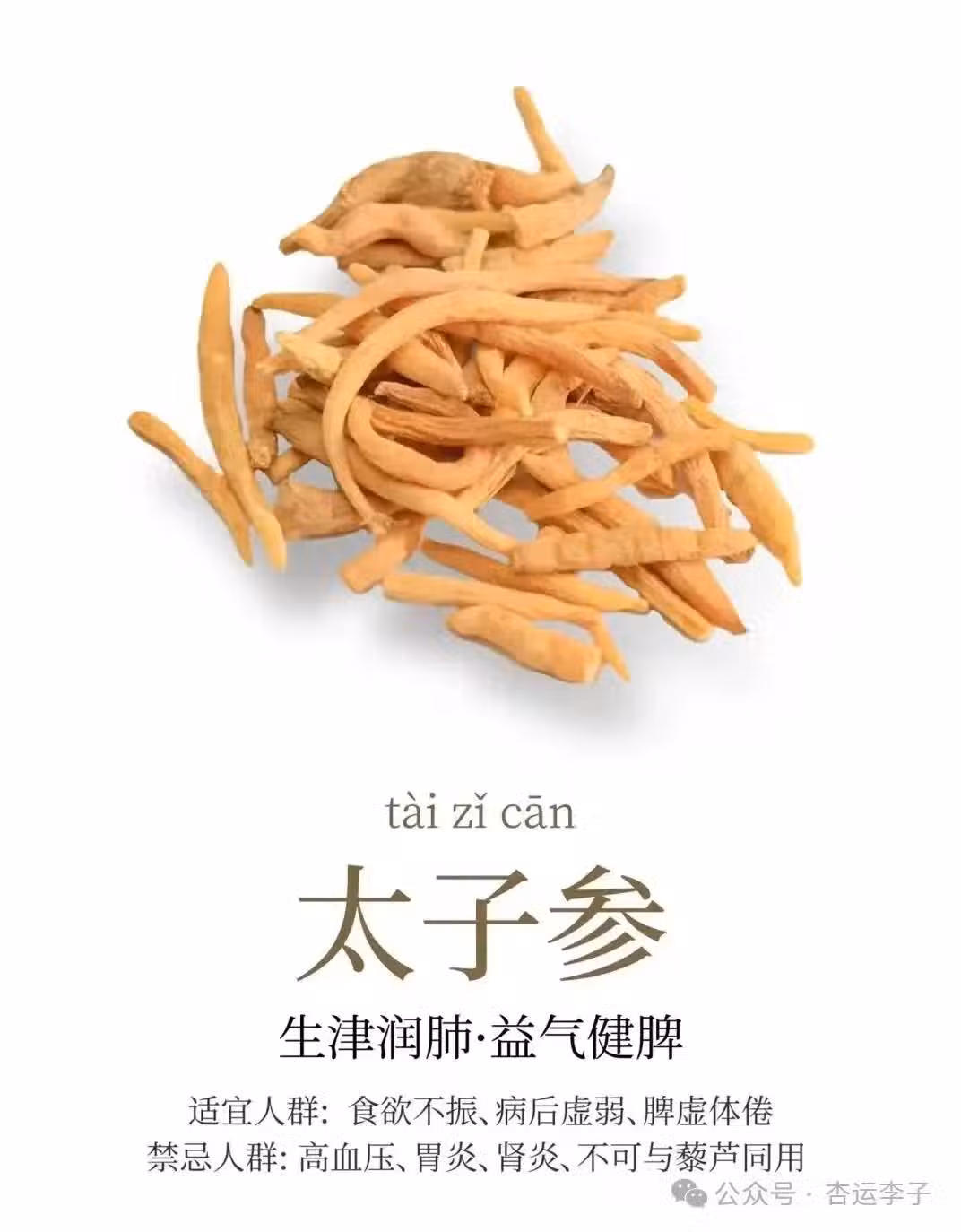 今天給分享一下太子參,太子參又叫孩兒參、童參,非常適合孩子嬌嫩的脾胃,它的性味平和,藥性穩穩噹噹的,孩子吃著特別合適。太子參對孩子好處多多,能潤肺生津,春天天氣乾燥,孩子老是喊口乾舌燥,皮膚也乾巴巴的,它就能幫忙緩解;還能益氣健脾,把孩子的脾胃功能變強,脾胃好了,營養吸收就好,孩子自然長得快;而且肺氣足了,孩子抵抗力也跟著增強,感冒啥的就不容易找上門啦。
