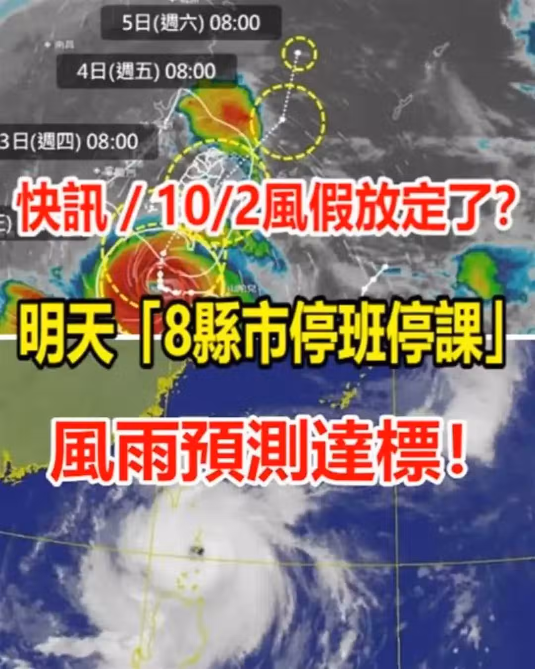 颱風假放定了 !! 明天「8縣市停班停課」風雨預測達標!