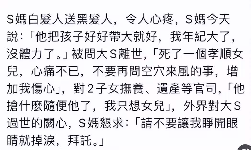 大S孩子未參加媽媽葬禮原因曝光,馬筱梅委屈表示:徐家未通知