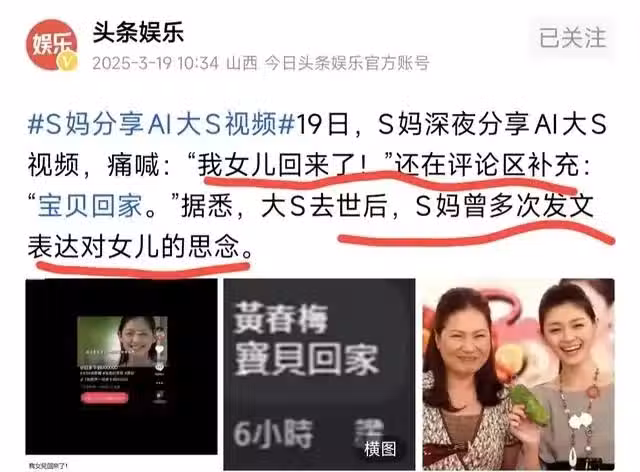 3月19日,黃春梅女士在社交媒體帳號上連續發出三次動態,懷念自己的女兒大s,為此好多網友紛紛勸解讓她調整好自己情緒,大s雖然走了但是還有很多家人,未來日子還長,要堅強的走下去。還有網友喊話小s,讓她關注媽媽精神狀態,儘量多去陪伴,讓她不會那麼孤單。