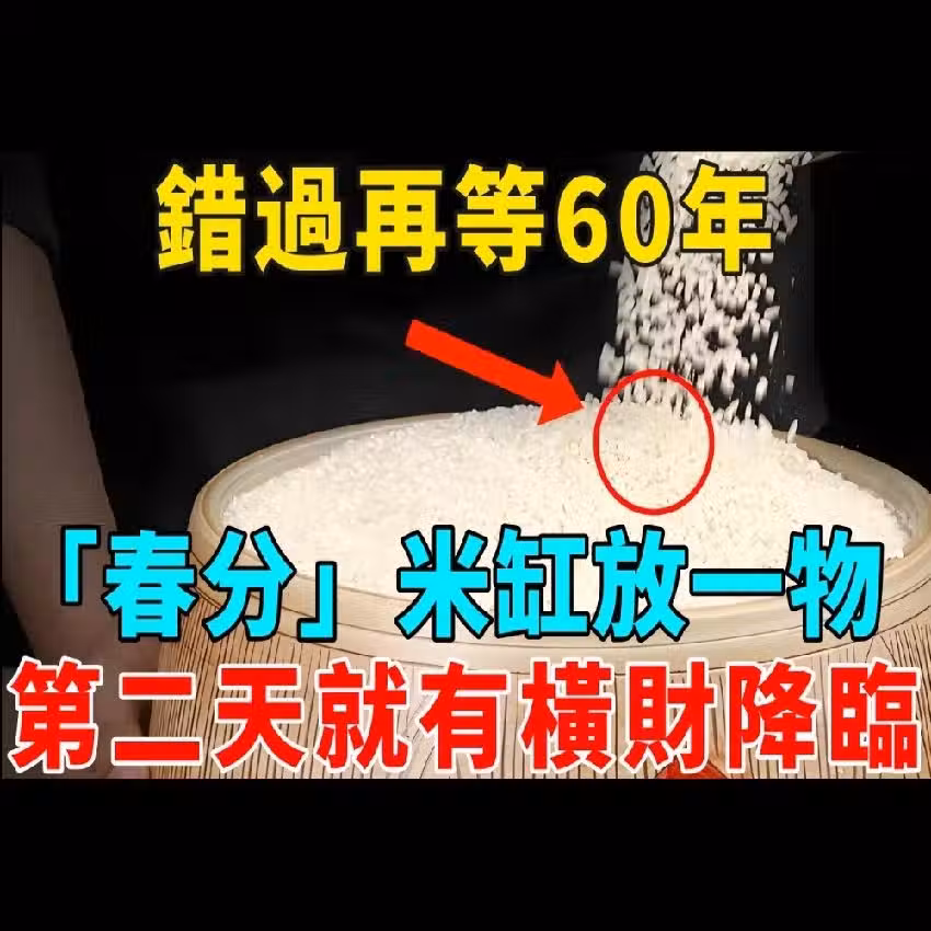 📢 風水大師提醒:「春分日」只要在米缸放入一物,就能開啟財庫,讓你未來一年財運旺到擋不住,甚至橫財降臨! 趕快看看怎麼做!