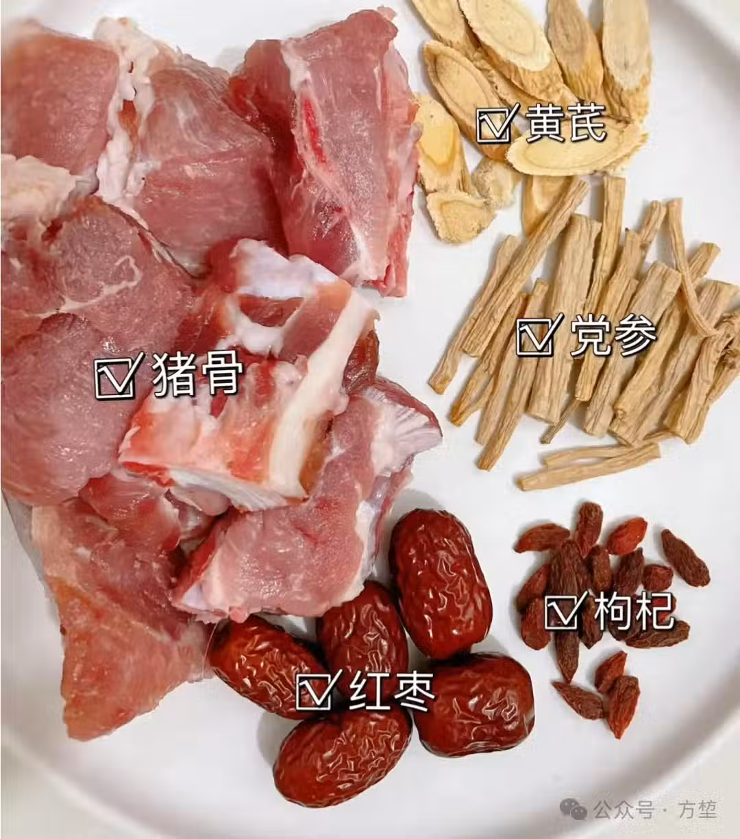 準備食材:豬骨 黃芪 黨參 枸杞 紅棗 薑片