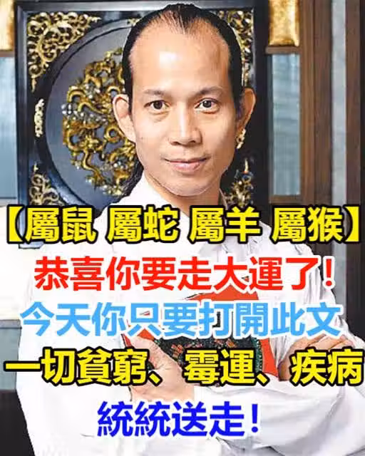 【屬鼠 屬蛇 屬羊 屬X】恭喜你要走大運了,一切貧窮、霉運、疾病統統送走