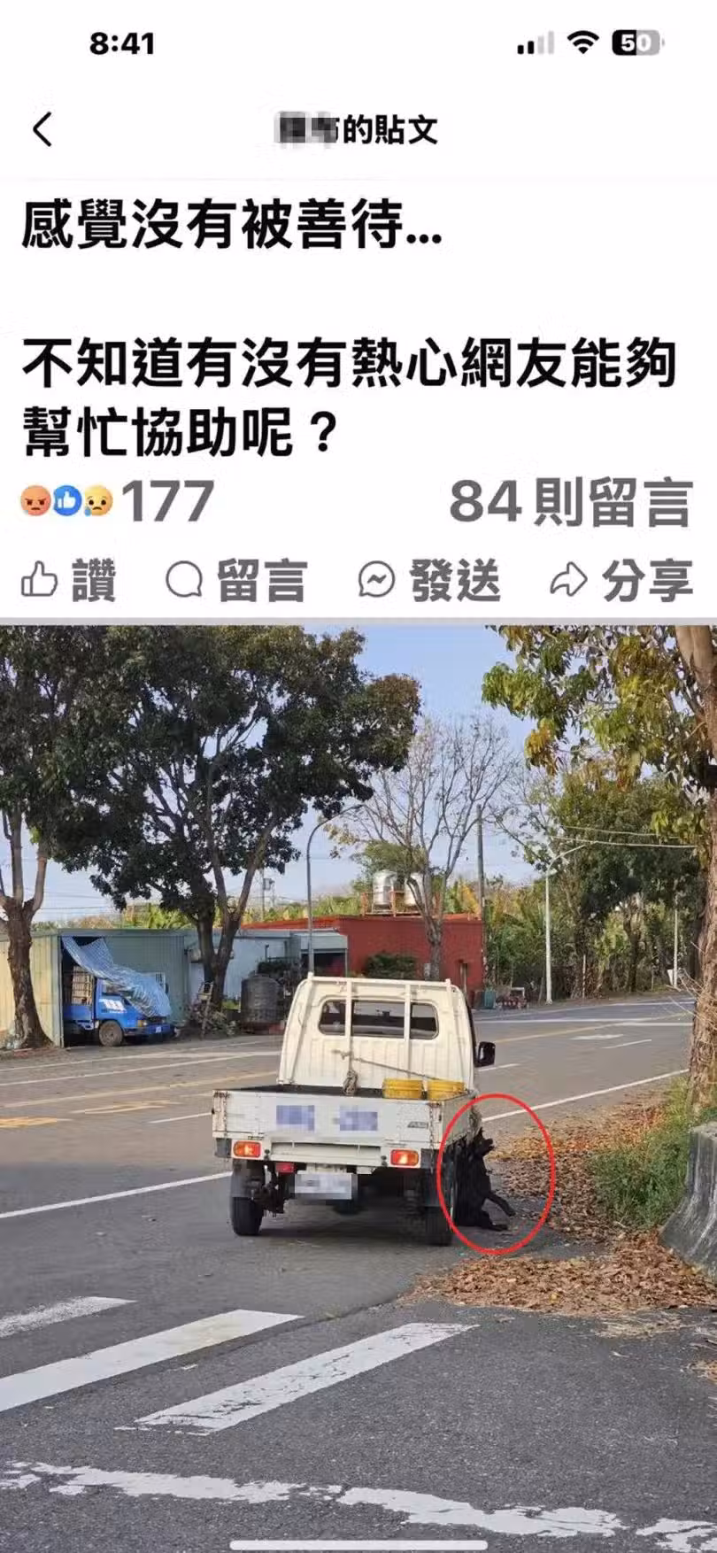 黑狗被弔掛行駛中小貨車拖行!台南警展開調查 飼主稱兜風「不小心掉下去」