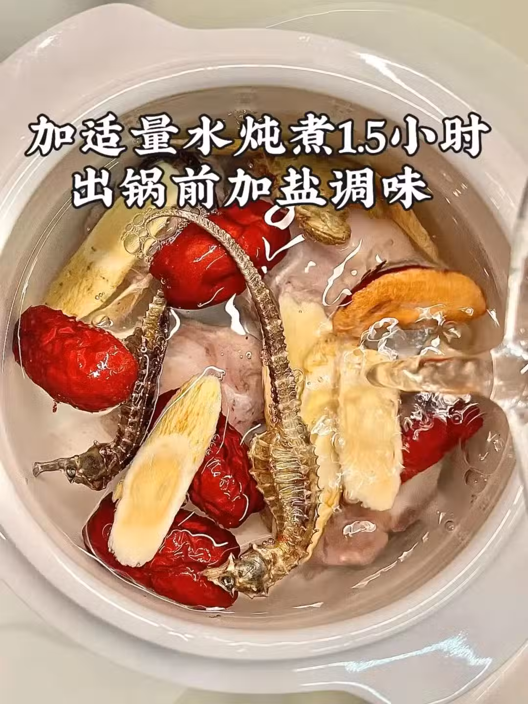 【小貼士】:海馬被譽為"海洋人參",富含促進骨骼生長的活性物質,搭配田七活血化瘀,特別適合運動後肌肉酸痛的孩子。北芪補氣固表,增強抵抗力,枸杞明目養肝,紅棗調和脾胃。這道湯不僅助長高,更能改善孩子體質虛弱、容易感冒的情況,是春季助長的首選湯品。
