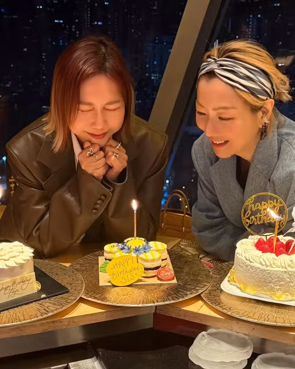 在生日的合照中,鄭秀文戴上黑白灰頭巾,黑色上衣外配灰色西裝,配搭簡潔時尚,而她在壽星女旁邊笑容滿面,正為好朋友送上最真摯的祝福。鄭秀文除了笑容燦爛之外,皮膚亦十分白凈幼滑,而且臉上沒有細紋充滿天然感,可見即將開演唱會的她已出最佳狀態。