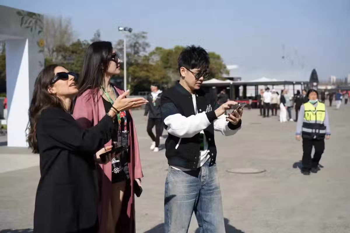 50歲林志穎在上海,去看賽車,老婆陳若儀露雙腿,在現場大出風頭