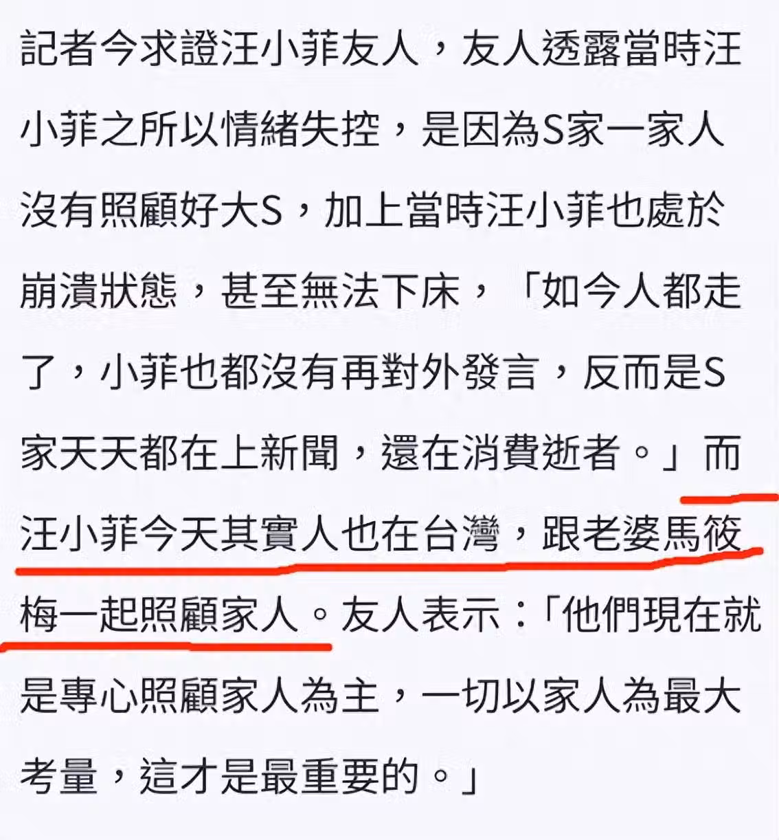 緊接著汪小菲的友人又向媒體曝光原因,並透露汪小菲和馬筱梅時下就在台灣陪孩子,現在他們就是一切以倆孩子為主。