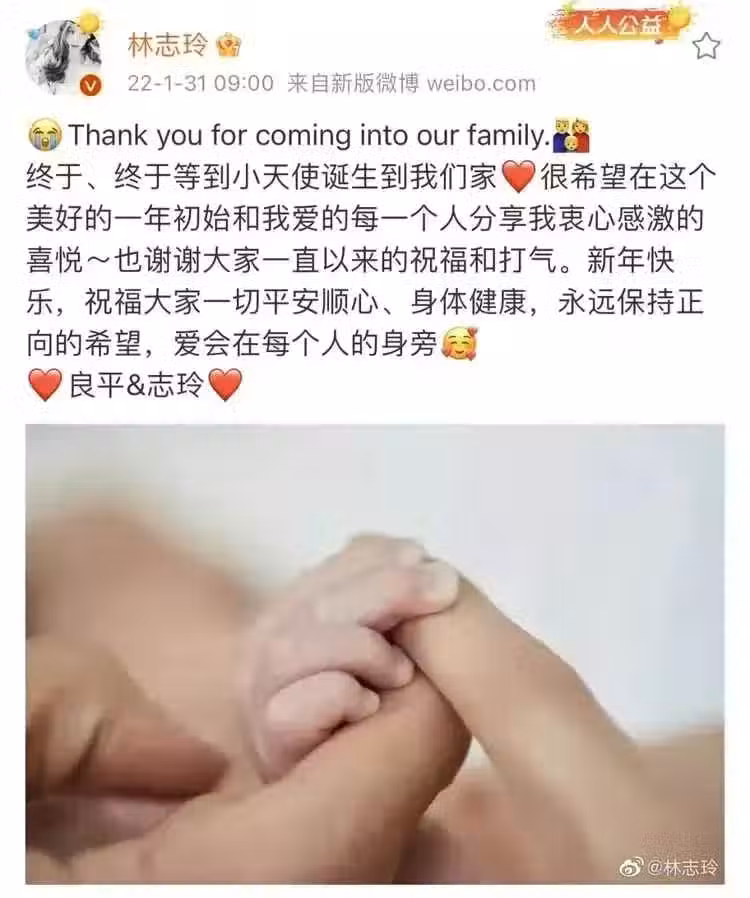當時這條話題的評論區可是清一色的祝福,大家都在祝賀林志玲在牛年的尾巴生了個可愛的牛寶寶。