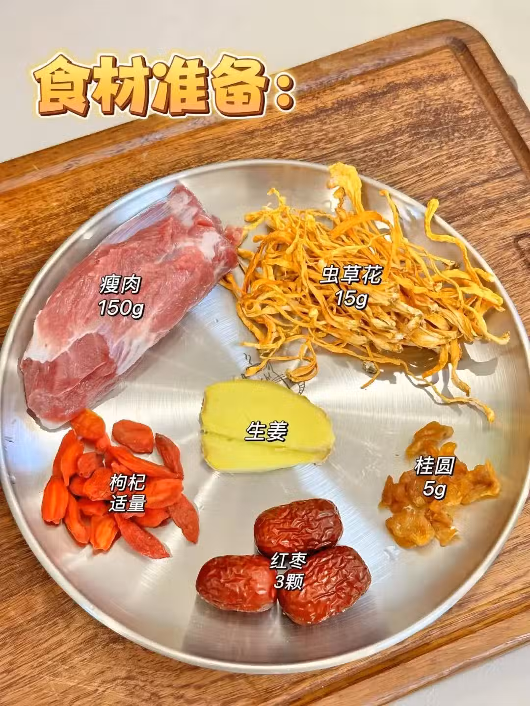 2.得把蟲草花、桂圓,薑片,紅棗,這些食材洗凈,紅棗去核就可以