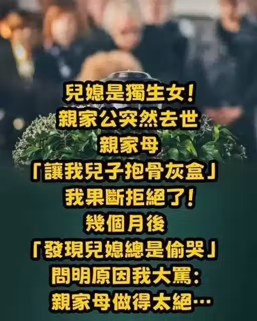 兒媳是獨生女!親家公突然去世,親家母「讓我兒子抱骨灰盒」我果斷地拒絕了! 幾個月後「發現兒媳總是偷哭」問明原因我大罵:親家母做得太絕…