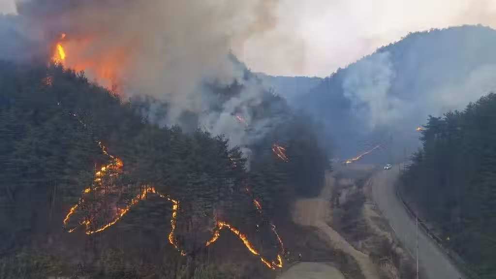 韓國全國多地發生20多起山林野火,目前已造成四名消防員遇難。因火勢兇猛,韓國政府星期六(3月22日)宣布相關地方發生「災難事態」,南部15個村莊的200多名居民被令撤離。