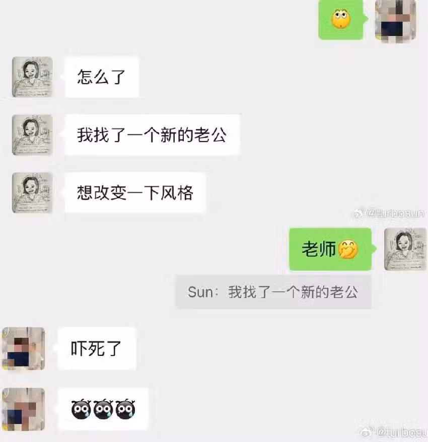 孫儷22日在微博發文分享一則趣事,她表示自己原先想傳訊息跟經紀人分享,自己最近換了一個新的老師,想要改變一下風格,沒想到一不小心打太快變成了「新老公」,嚇得她趕快解釋,這才讓對方送了一口氣,並表示「嚇死了」;孫儷也坦言,訊息傳出後自己也下了一跳,「我自己發出去後也嚇了一跳」。