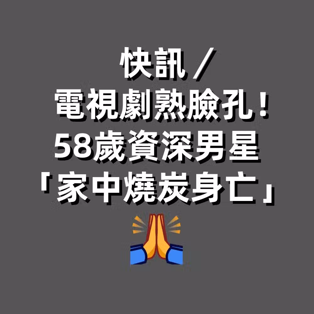 電視劇熟臉孔!58歲資深男星「家中燒炭身亡」