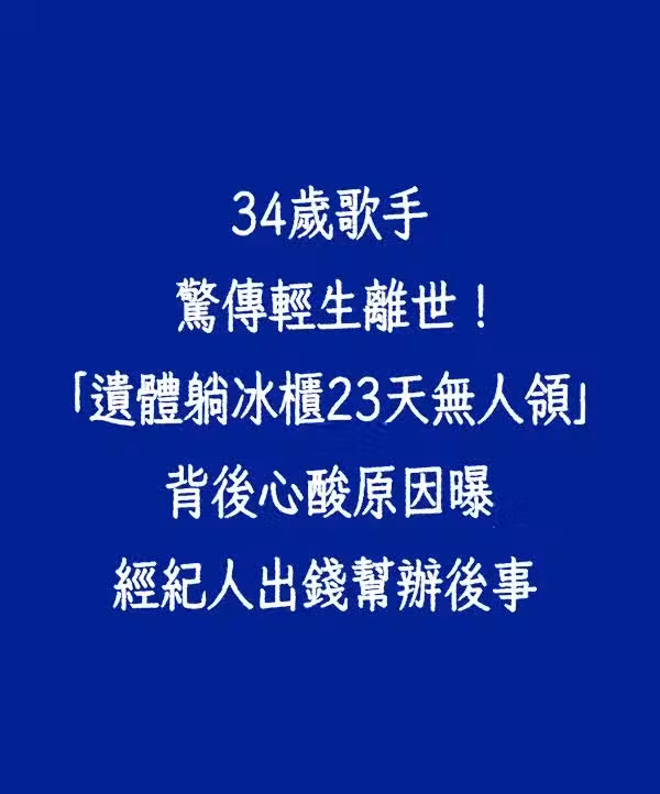34歲歌手驚傳輕生離世!「遺體躺冰櫃23天無人領」背後心酸原因曝 經紀人出錢幫辦後事