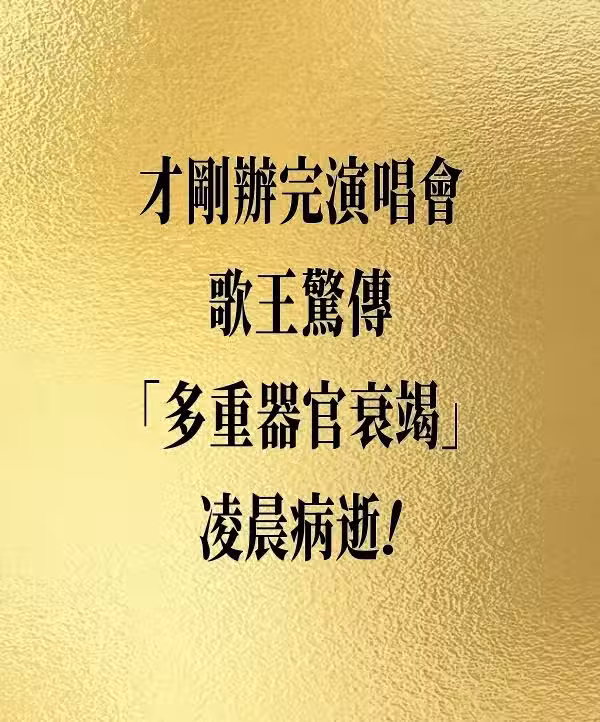 才剛辦完演唱會 歌王驚傳「多重器官衰竭」凌晨病逝....