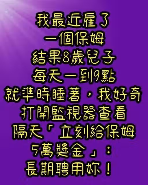 我最近雇了一個保姆,結果8歲兒子每天一到9點就準時睡著,我好奇打開監視器查看,隔天「立刻給保姆5萬獎金」:長期聘用你!!