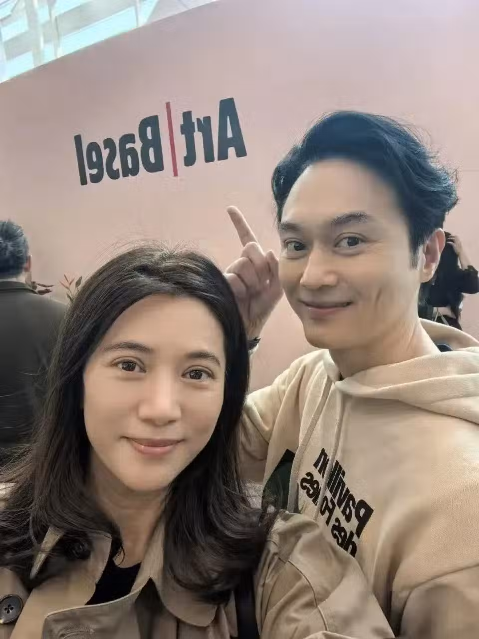 53歲張智霖在香港,和袁詠儀看畫展,素顏皮膚好,又高又瘦不油膩