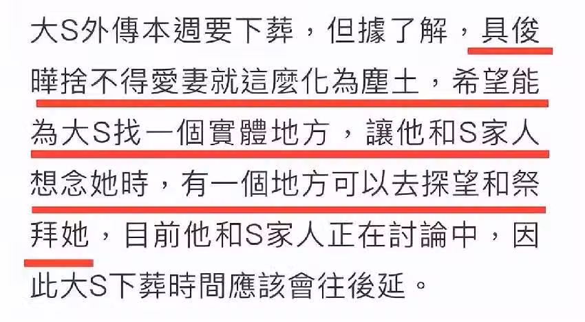 可臨近樹葬日期的時候,台媒又曝出具俊曄不想讓妻子樹葬,希望能夠給大S塔葬或者準備墓碑,這樣以後大家祭奠大S都能有地方去。