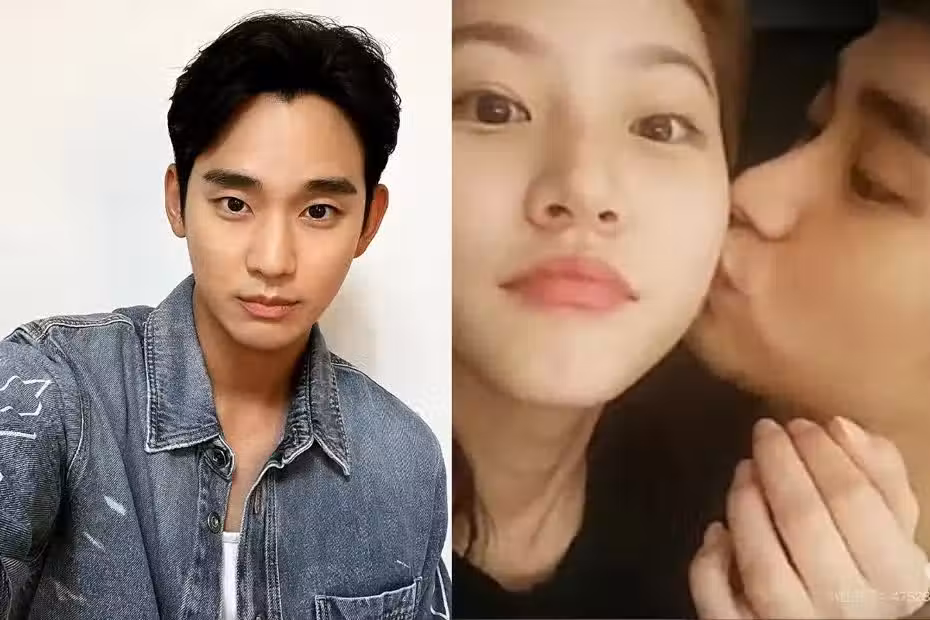 金秀賢(右)親吻金賽綸的照片網絡瘋傳。圖/摘自金秀賢IG、YouTube截圖